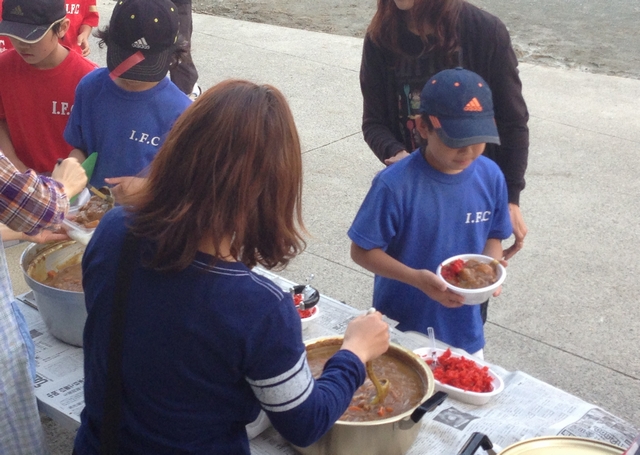 じゃんけん大会、そしてお母さん達特性のカレーを食べて、子供達も大興奮でした
