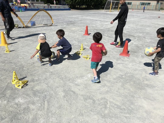 今日は稲荷FCの体験を行い、幼稚園生と2年生が体験に来てくれました
